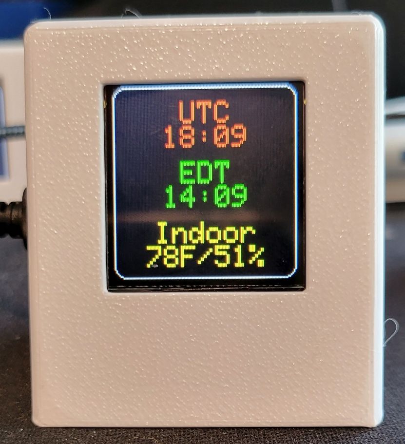 1. If you ever need to change any parameter, press the reset button on the D1 Mini twice in succession about one-second apart. You may have to do this a few times. The unit goes into configuration mode when the blue LED on the D1 Mini turns on and the configuration reminder screen appears. The LED is not directly visible. It faces the interior of the case. It is on when you see its bright blue reflection from the inside of the case.