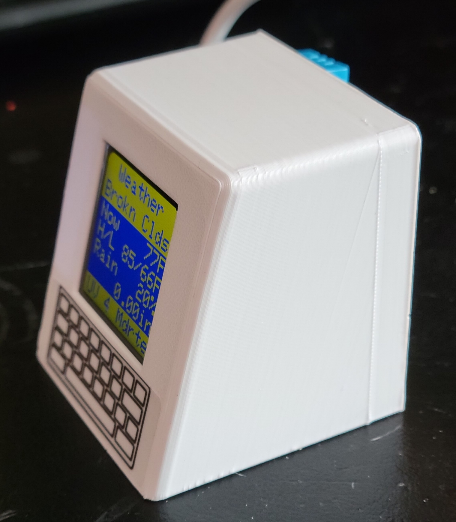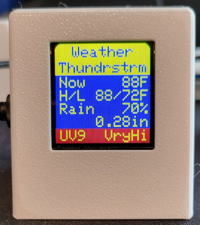 • The kit obtains and displays current and forecasted weather for your location from WeatherBit.io
