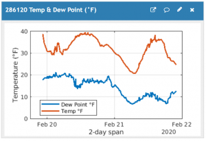This MATLAB visualization calculates the dewpoint from temperature and humidity. The formula is given at https://en.wikipedia.org/wiki/Dew_point. The values are taken from your ThingSpeak channel at the time your webpage is opened. You must manually update the chart by refreshing your browser. % Read Humidity and Temperature from a ThingSpeak channel to calculate dew point. % …